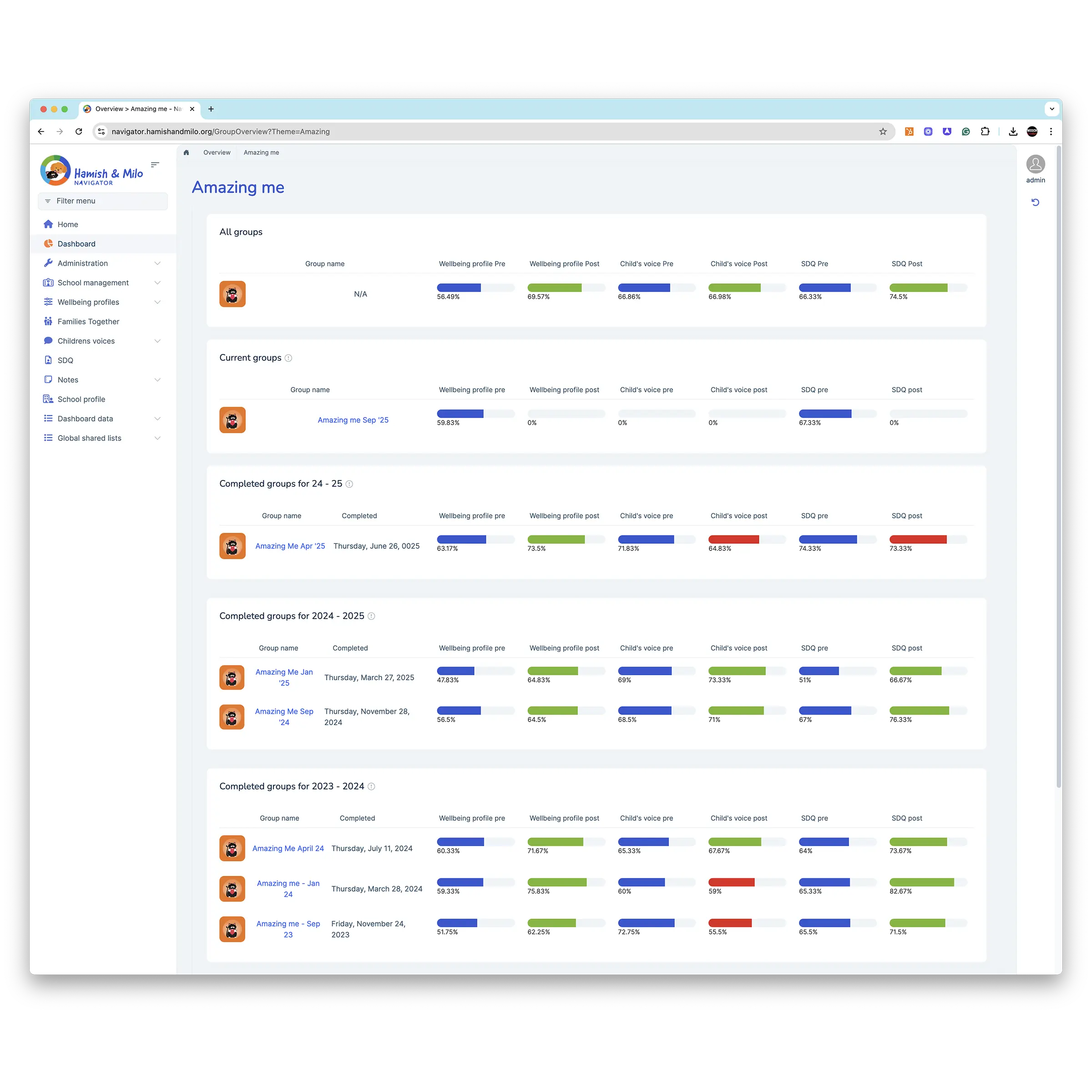 Navigator provides practitioners with live data to demonstrate the impact of Hamish & Milo programmes on children. Navigator tracks the progress of how the programmes are supporting children’s social and emotional development, changes in children’s feelings or how they present having been part of the intervention.